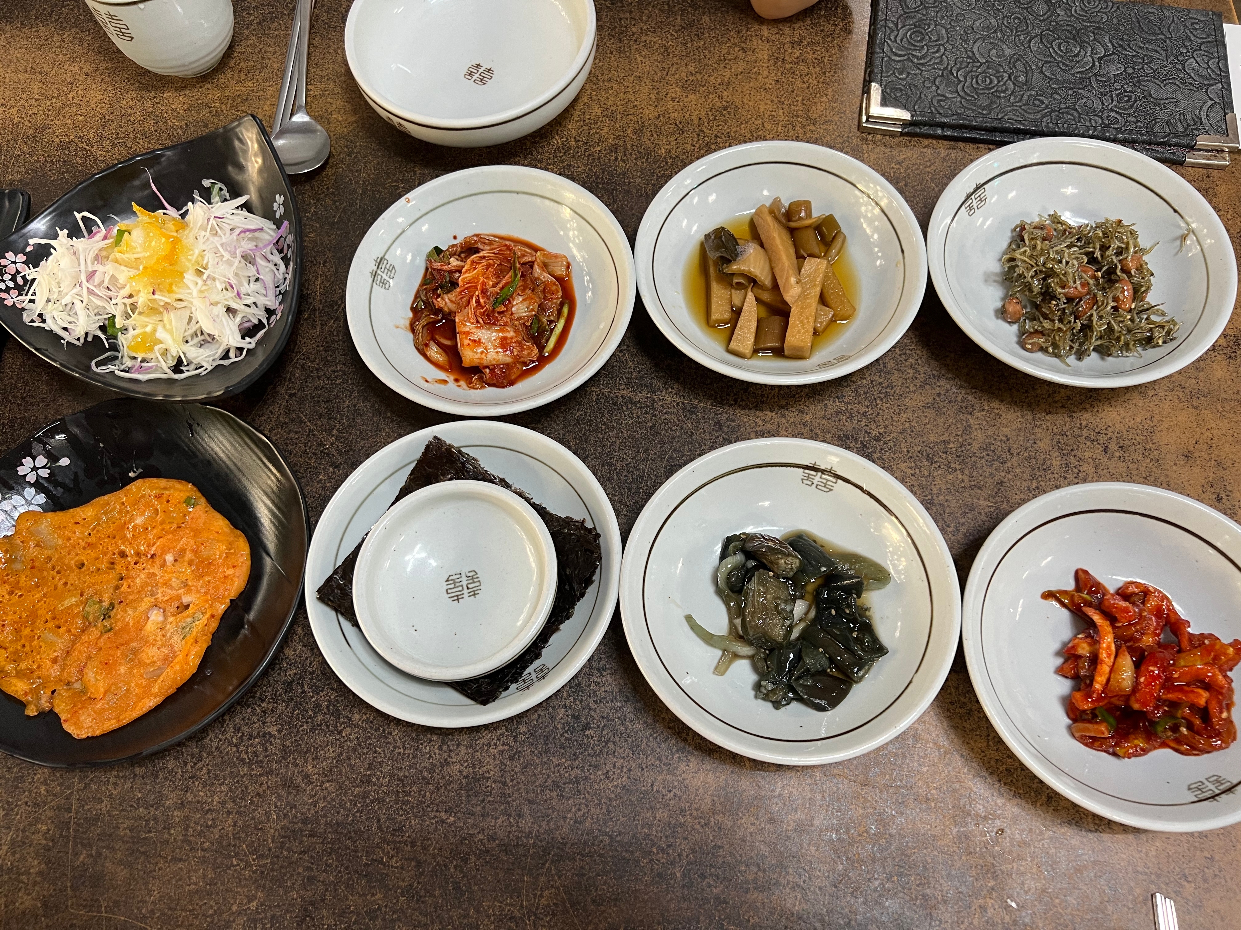 기본찬입니다. 음식들 깔끔하고 무난하며 괜찮았습니다. 저는 특히 멸치가 맛있어서 두 번 리필해 먹었네요.