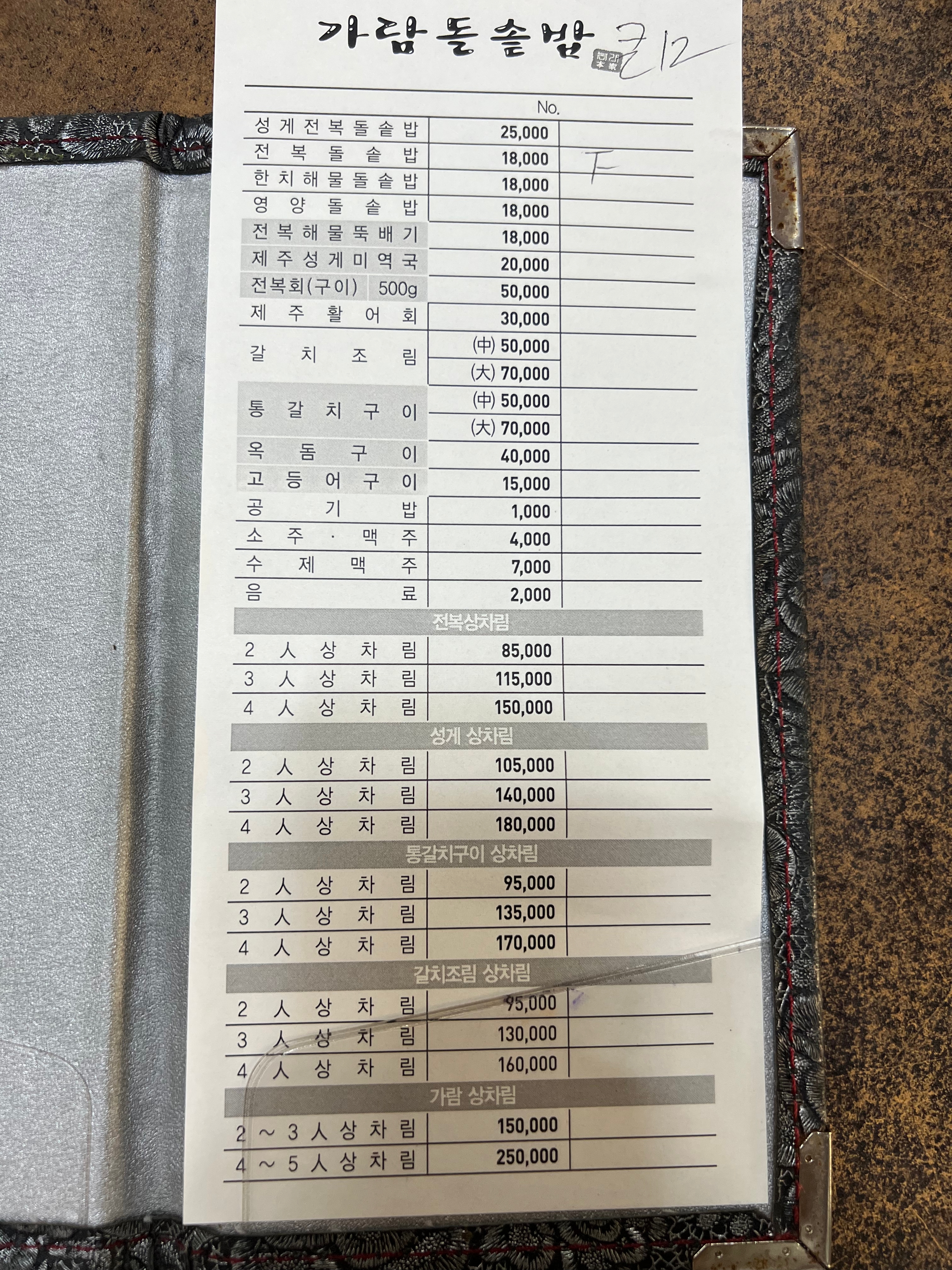 메뉴입니다. 전복돌솥밥 이외에도 갈치조림, 갈치구이, 옥돔구이, 성게미역국등의 음식과, 상차림이라는 세트도 판매중입니다. 저희는 가볍게 식사하러 간 거라 전복돌솥밥 3개 주문했습니다.