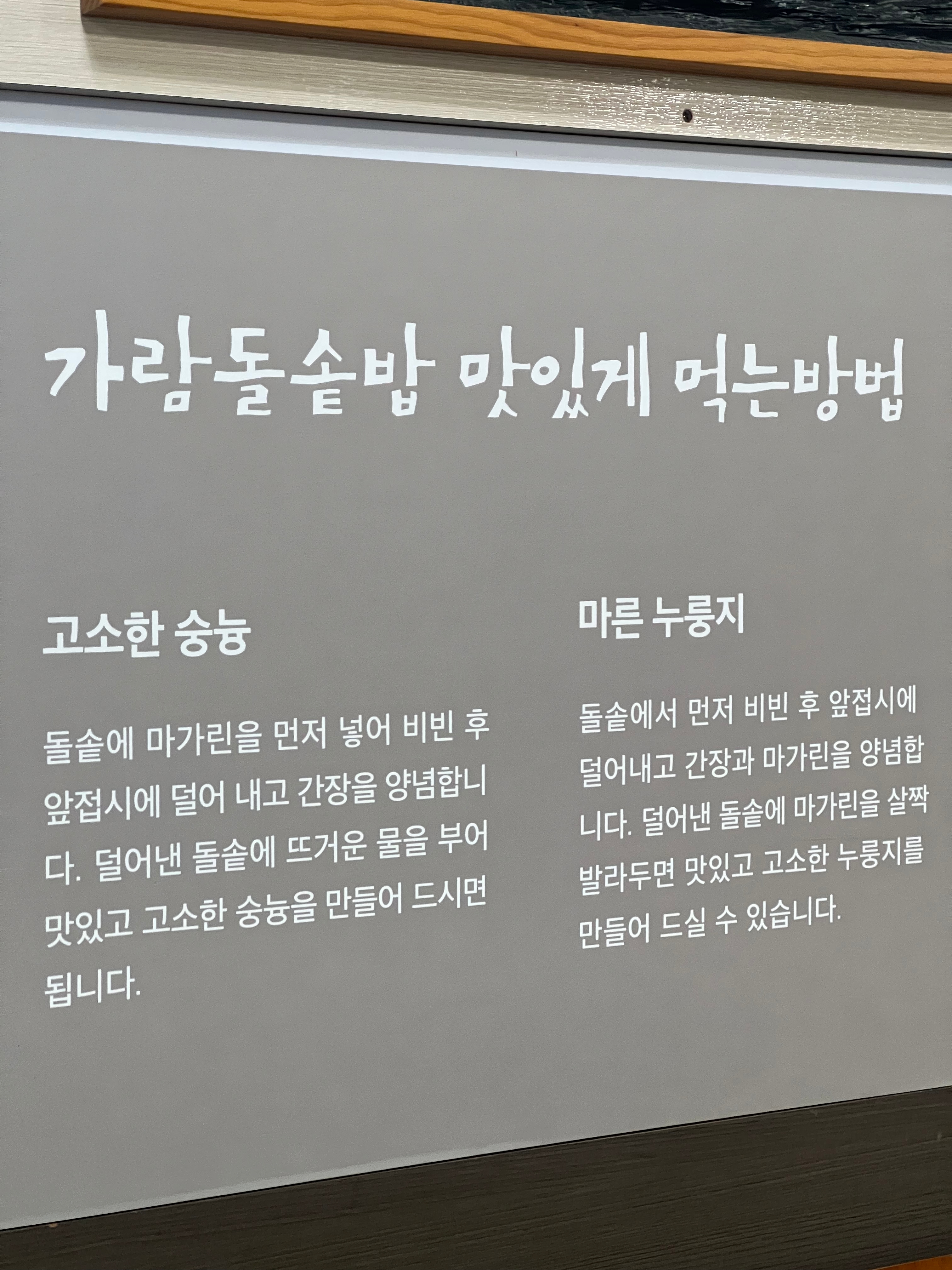 이 설명을 보고 마가린을 넣은 숭늉이라... 고민이 많아지는 문구입니다. 하지만 또 식당에서 추천하는 것을 먹어 봐야 하지 않겠어요? 저는 첫 번째 방법으로 먹기로 했습니다.