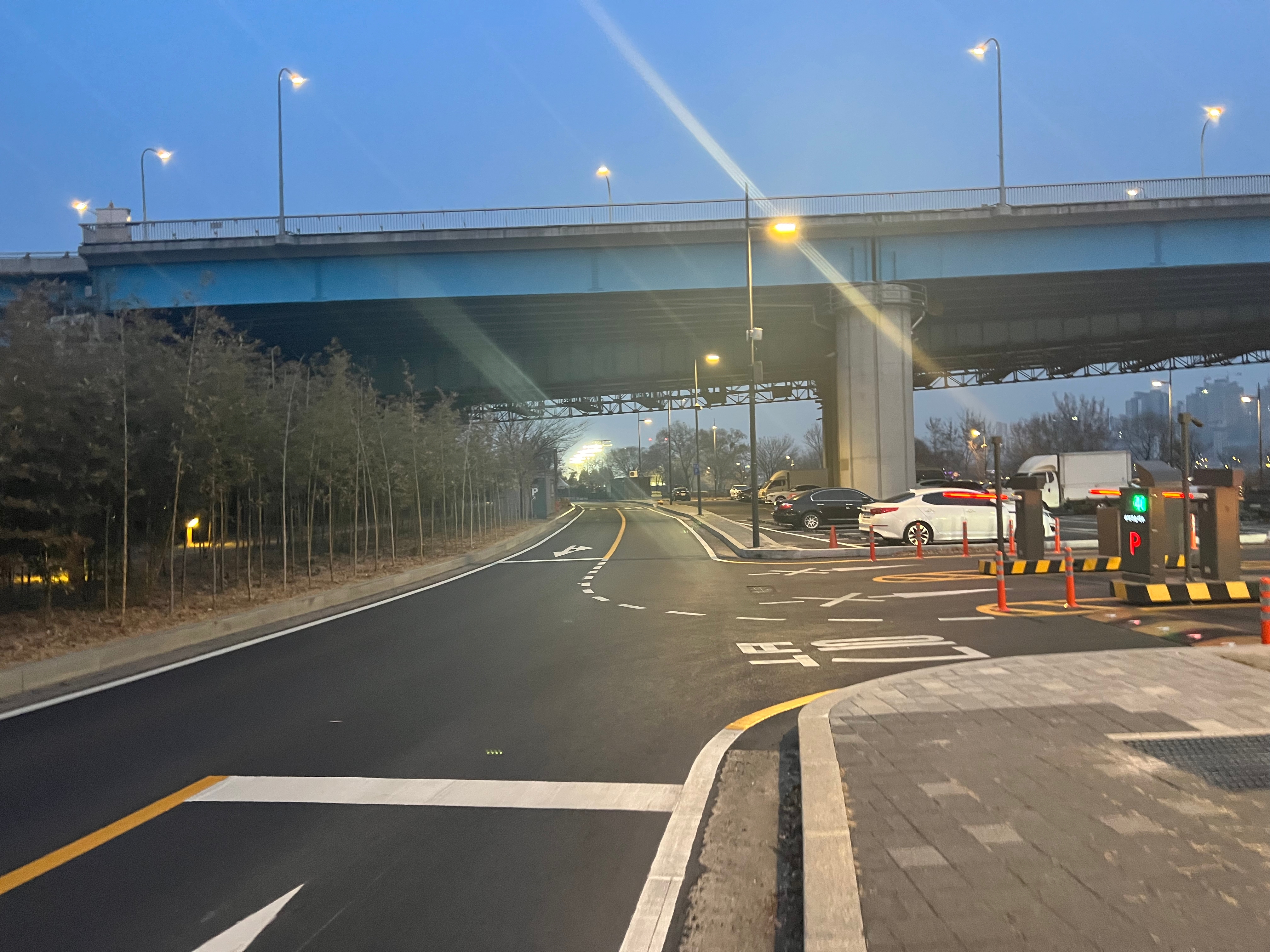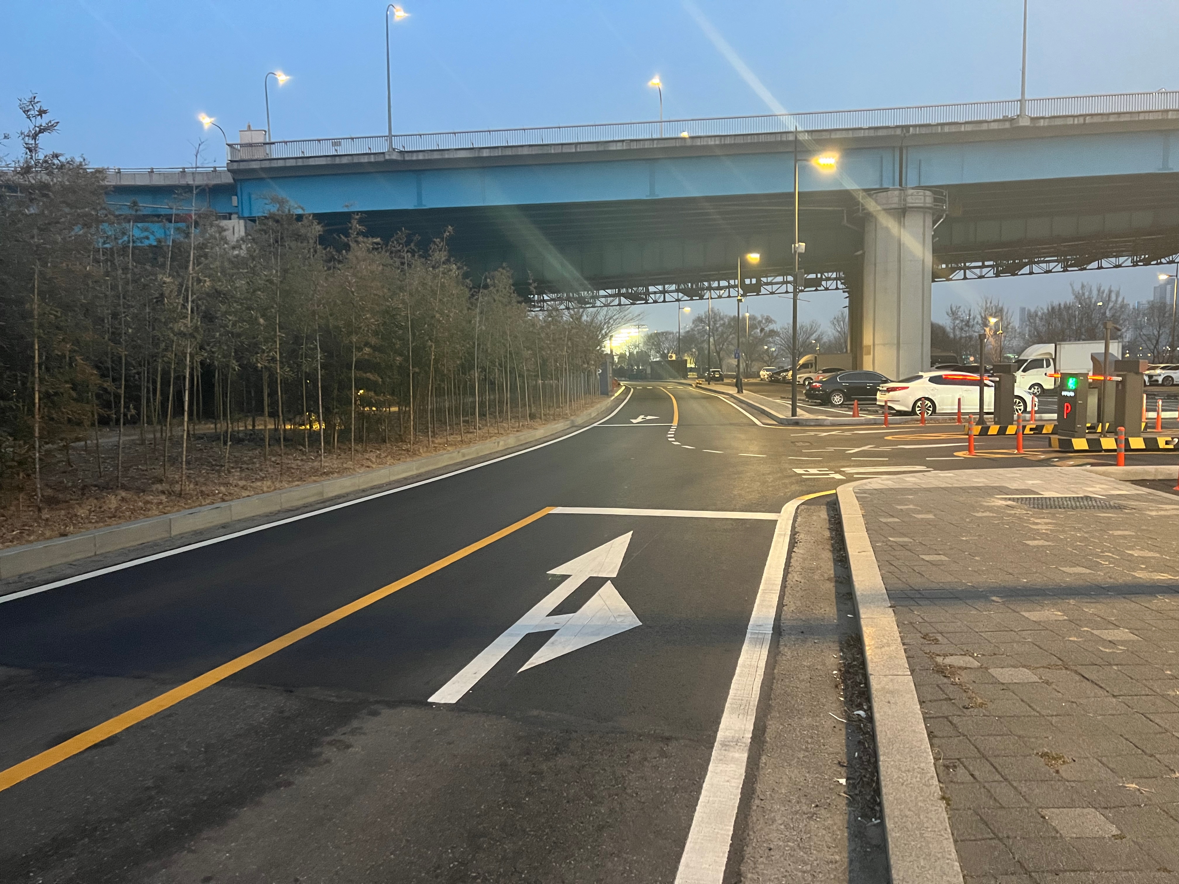 이촌한강공원 2 주차장 입구입니다. 로드뷰에는 차단기가 안 나와있습니다. 현재는 공사 완료로 차단기와 무인정산기가 설치되어 있습니다.