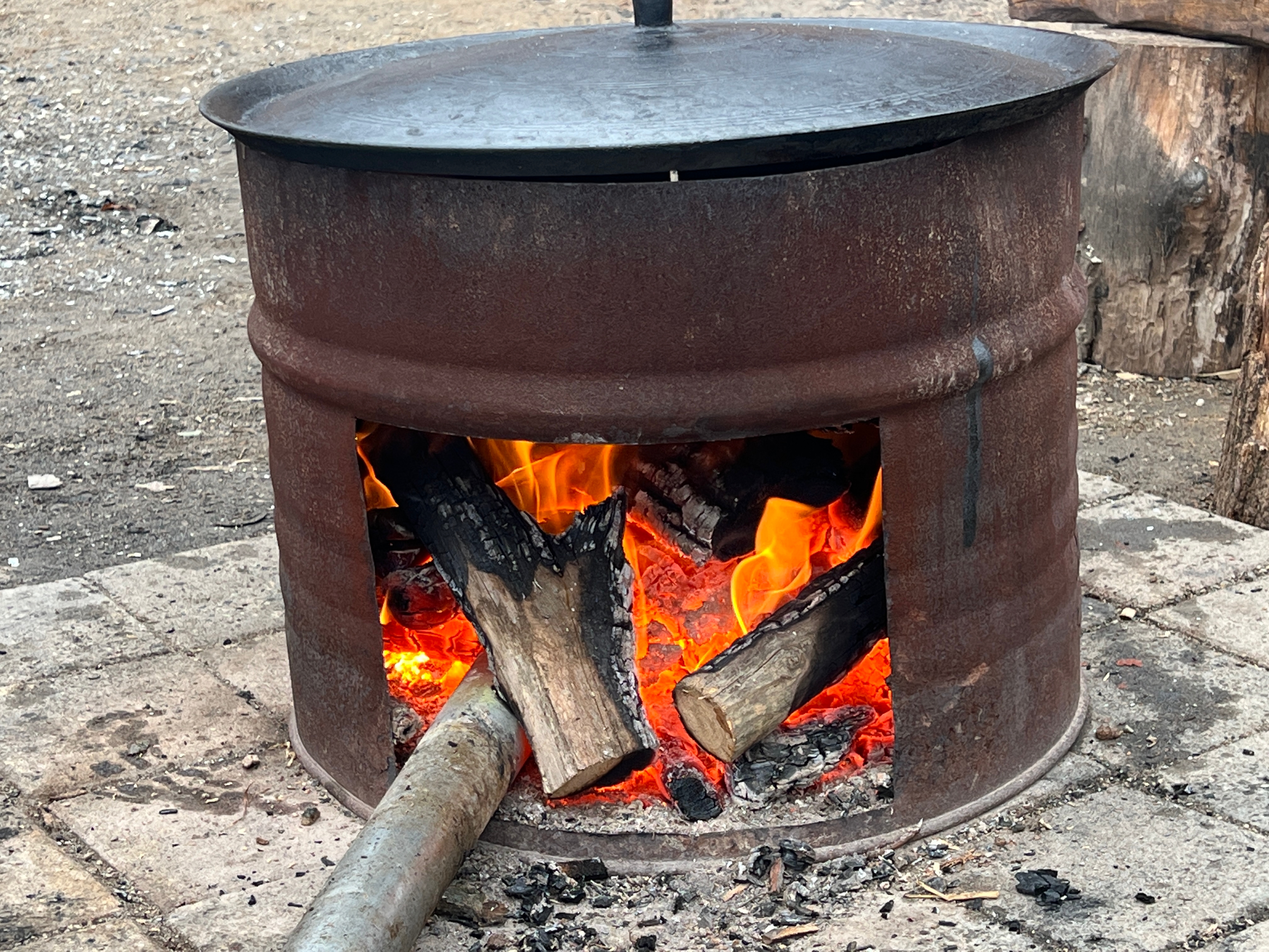 저는 인스타감성의 그런 그림을 원했습니다. 그랬기에 목살이 아닌 삼겹살을 준비했고, 묵은 김치, 미나리, 양파, 버섯 등등 많은 준비를 해왔습니다. 불이 쌘 건지, 솥이 너무 상태가 안 좋은 건지 알 수가 없었습니다. 그리고 장작이 젖어서 연기 때문에 고기를 구울 수가 없었습니다. 이래저래 대실패 직전에 그냥 모두 다 넣고 볶아 버렸습니다. 엄마김치가 모든 것을 살렸습니다. 다 구워서 들어와서 구이바다에 다시 재조 해서 먹으니 꿀맛이었습니다. 인스타감성도 좋지만 여러모로 불편했습니다. 재미는 있었지만 생각보다 힘드니 솥뚜껑 삼겹살 하고 싶은 분들은 생각 많이 하시고 준비하시기 바랍니다.